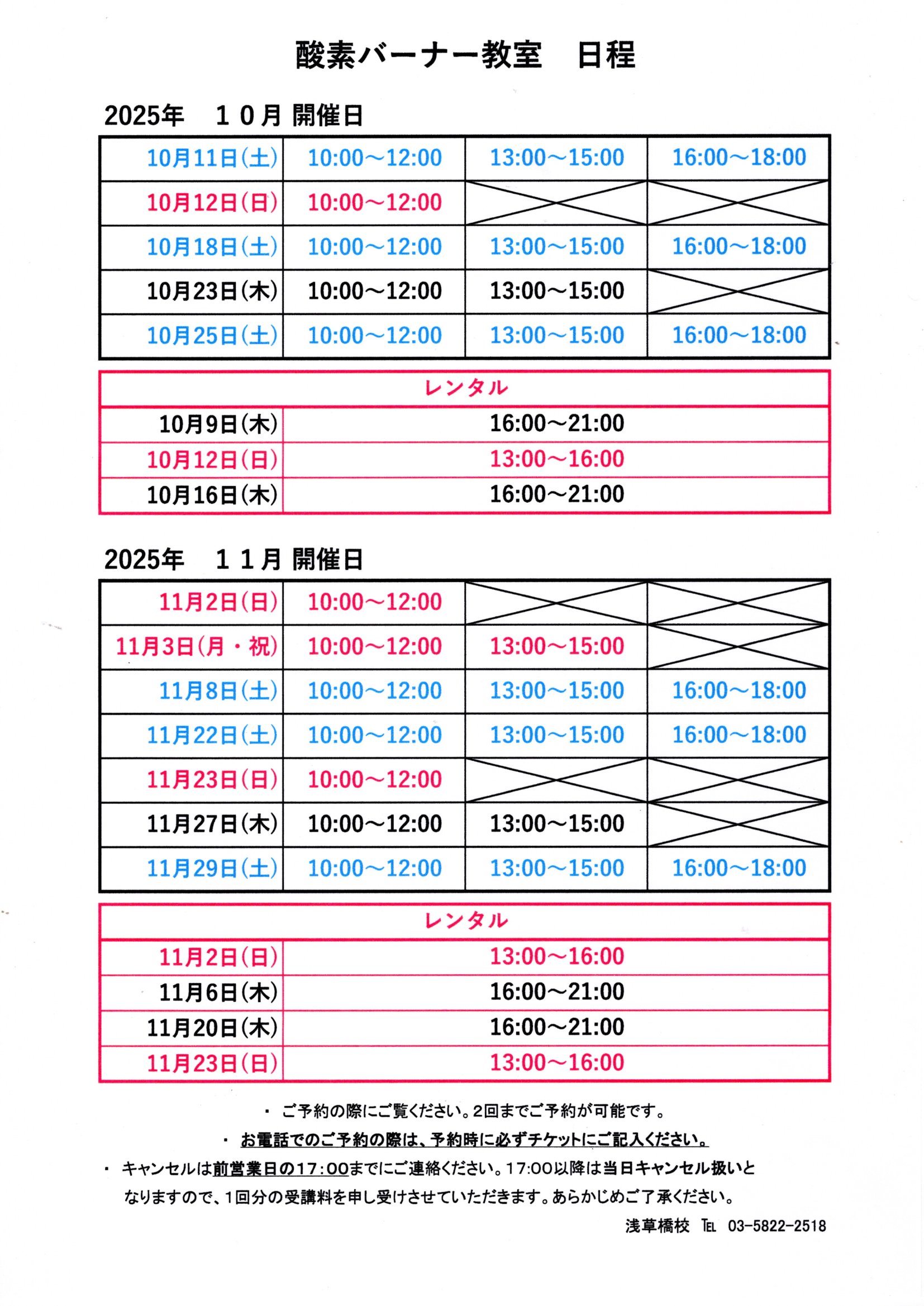 2025.10月11月教室スケジュール