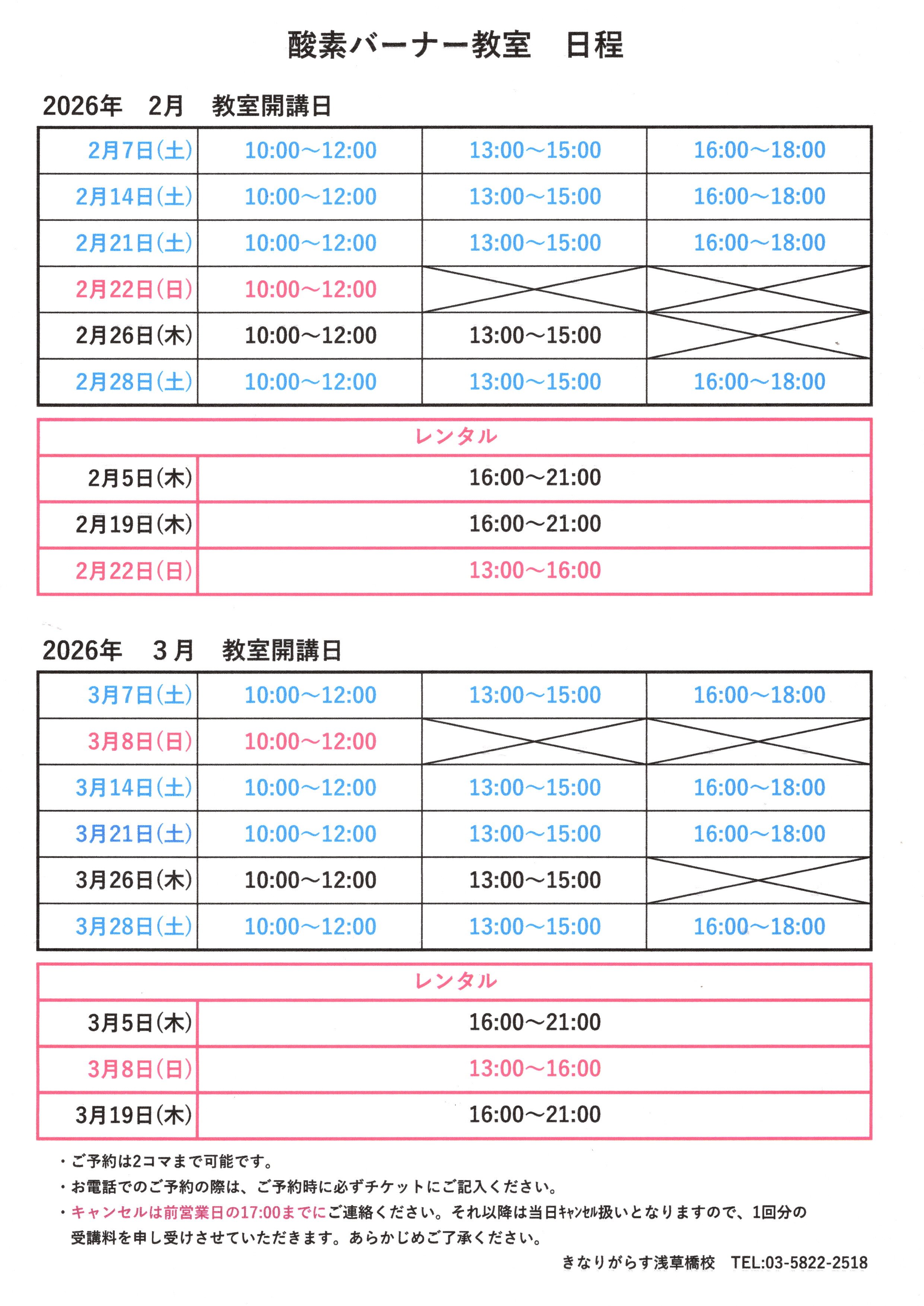 2026.2月3月教室スケジュール
